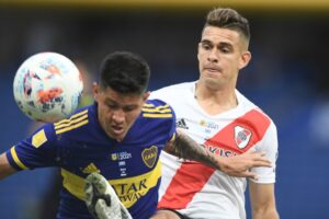 Un gol de penalti del colombiano Sebastián Villa a los 41 minutos y uno del creativo argentino Agustín Palavecino en el 67 dejó en tablas (1-1) el superclásico argentino que Boca Juniors y River Plate jugaron este domingo en la Bombonera en cumplimiento de la quinta fecha de la Liga.