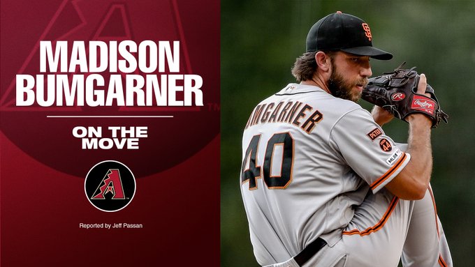 El pitcher Madison Bumgarner abandonaría a los San Francisco Giants, equipo con el que está desde 2009 y con quienes ganó una Serie Mundial en 2014. Jeff Passan, confirmó que el lanzador firmaría por cinco años con los Diamondbacks de Arizona. El traspaso sería por la cantidad de 85 millones de dólares, de los cuales 15 serían pagados a largo plazo, por lo que una vez que su contrato acabe con Arizona, Bumgarner seguiría recibiendo dinero por parte del equipo de la División Oeste de la Liga Nacional. Se preveía que la cifra por el pelotero de San Francisco sería superior a los 100 millones de dólares; sin embargo, la oferta por ‘Mad Bum’ no llegó a tanto.