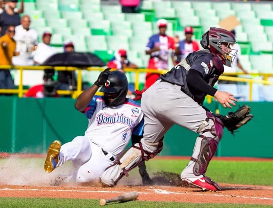 Luego de que el lanzador sacara a Junior Lake con un elevado al jardín derecho, el estadounidense Peter O’Brien recibió boleto gratis, y luego Abraham Almonte pegó doble, impulsando al norteamericano para ponerse al frente 1-0. Luego, Diego Goris conectó un sencillo al bosque central, remolcando a Almonte para el 2-0. El cuerpo monticular dominicano predominó durante las primeras ocho entradas, hasta que en la alta del noveno episodio, Juan Carlos Gamboa entró como emergente de Ramón Ríos y ante los lanzamientos del relevista Ramón Ramírez, pegó sencillo al bosque central, impulsando a Joey Meneses desde segunda base.