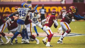 Goff lanzó para 309 yardas y dos «touchdowns» y corrió para otro, y los Rams superaron a Washington en el regreso de Alex Smith casi dos años después de que una grave lesión puso en peligro su carrera. Mientras que Smith jugó su primer partido de la NFL luego de 693 días desde que se fracturó la tibia y el peroné derechos. Smith ingresó al campo de juego después de que el nuevo mariscal de campo titular de Washington, Kyle Allen, se lesionó el brazo izquierdo. Smith completó 9 de 17 pases para 37 yardas en el mismo campo del que lo sacaron el 18 de noviembre de 2018 antes de someterse a 17 cirugías para reparar la lesión.
