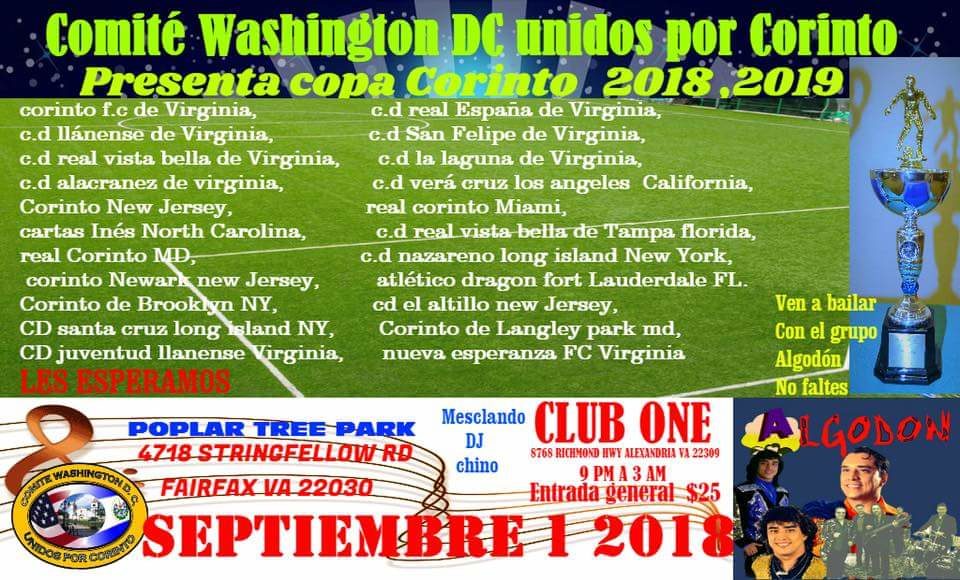 30 agosto, 2018Publicado por FDRadio.net el 30 agosto, 2018Categoría ComunidadTorneo “Copa Corinto” 2018 en VA CRONOGRAMA DE PARTIDOS Este 1 de Septiembre la Comunidad de Corinto en el DMV tendrá una actividad deportiva y comunitaria con todos […]