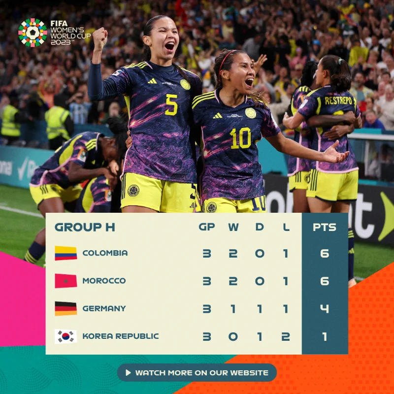 La derrota no impidió que Colombia clasificara como primera de grupo gracias a las dos victorias que consiguió en sus dos primeros partidos. Su próximo rival en octavos será Jamaica. Colombia perdió, pero lo hizo jugando, buscando siempre el partido. Tuvo ocasiones para igualar, pero no tuvo el acierto que mostró en sus partidos anteriores. Las Caicedo, Santos, Ramírez y Usme lo intentaron una y otra vez con hasta 11 disparos, pero de ellos solo tres fueron a puerta. Y también hay que resaltar el planteamiento de Marruecos, que obligado a ganar salió desde el primer minuto a buscar la victoria.