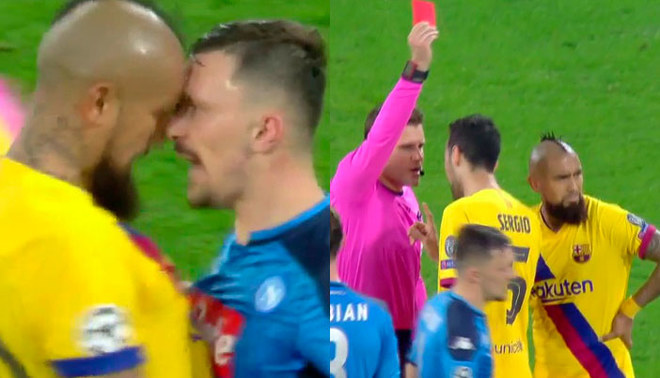Salió expulsado Arturo Vidal tras ser amonestado y cabecear sin sentido a Mario Rui. Piqué sufrió lesión de tobillo y Busquets con amarilla se pierde el choque de vuelta en el Nou Camp el 18 de marzo. En Stamford Bridge  con doblete de  Gnabry y otro de Lewandowski Chelsea se desmoronó en casa.