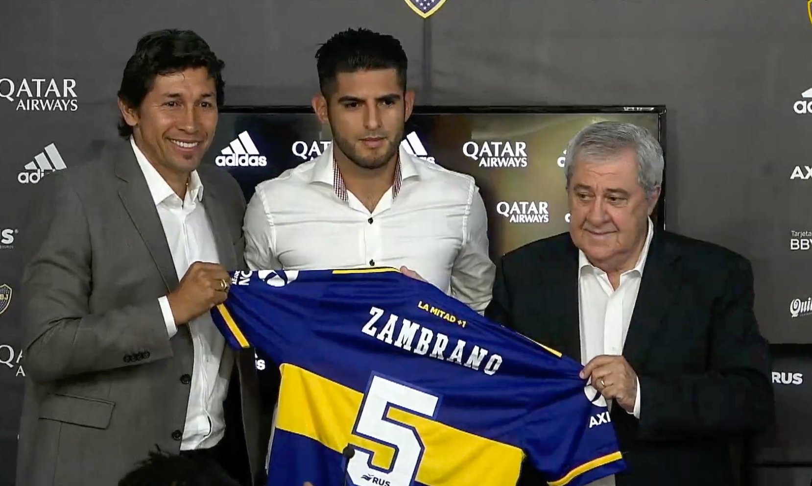 «Estoy cumpliendo un sueño que tenía desde pequeño» , fueron las primeras palabras del futbolista incaico como nuevo jugador de Boca, durante su presentación en conferencia de prensa junto al presidente Jorge Amor Ameal y Jorge Bermúdez, integrante del consejo de fútbol del club. «Estuve en Argentina hace ocho o nueve días esperando que se resuelva lo más rápido posible y hoy se resolvió. Al escuchar Boca, cerré otras puertas y me concentré solo acá. Estoy muy contento de estar acá», contó Zambrano y, respecto a sus expectativas, agregó: «Desde un comienzo es sumar al grupo, sentirme uno más, pelear el puesto que no es fácil. El equipo viene con una pretemporada encima pero tengo confianza en mi mismo para pelear un puesto».