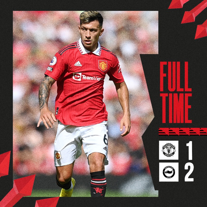 El Brighton le ganó 2-1 en Old Trafford, para amargar el debut liguero del neerlandés Erik Ten Hag en el banquillo de los ‘Red Devils’, en un partido en el que Cristiano Ronaldo no fue titular. El alemán Pascal Gross abrió el marcador a la media hora de partido (30) y dobló la ventaja de los visitantes casi diez minutos más tarde (39). Un gol en su portería del defensa argentino Alexis Mac Allister (68) redujo la ventaja y empujó a los locales a luchar por un empate que no llegó.