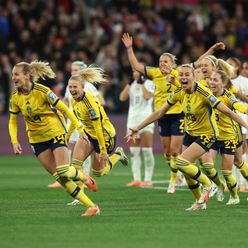El primer fallo desde los 11 metros lo ejecutó de Bjorn, la jugadora del Everton. Sin embargo, Megan Raphinoe, falló sorprendentemente en el siguiente turno. Blomqvist tiró por encima de la portería y la estadounidense Smith la mandó por encima del travesaño para empatar así la tanda. Finalmente, el lanzamiento de Hurtiq dio la victoria a Suecia gracias a un penalti que tuvo que ser revisado por el sistema de detección automática de goles.