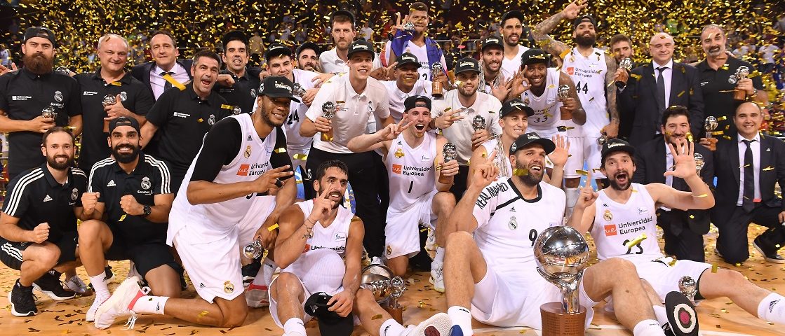 El Real Madrid, el conjunto blanco conquistó la trigésima quinta Liga de su historia, la cuarta en las últimas cinco temporadas. En un cuarto partido duro, se impuso el físico del Real Madrid, muy superior en la zona -con 46 rebotes, 18 de ellos ofensivos- e intenso atrás, anulando al azulgrana Thomas Heurtel, autor de tan solo dos puntos en el primer periodo. Para el segundo cuarto, mandaron las defensas. La inercia de Pangos situó al Barcelona por delante por vez primera (27-26, min.22), pero los de Pablo Laso, sin jugar un baloncesto coral, apretaron las tuercas en defensa ahogando, de nuevo, a un Barça Lassa sin muchas ideas.